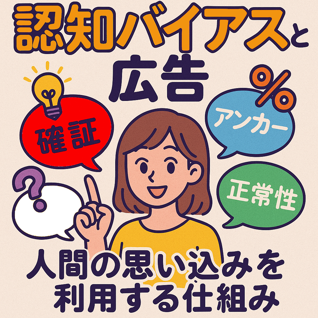 ユーザー心理から作る広告Day4:認知バイアスと広告 広告に活用される認知バイアスを解説。アンカリング効果やフレーミング効果、損失回避バイアスを理解し、倫理的に効果的な広告作成のヒントを学べます。 2025.09.30ユーザー心理から作る広告
