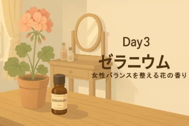30日で楽しむアロマの香りDay3:ゼラニウム ― 女性バランスを整える花の香り ゼラニウムは、華やかでフローラルな香りの中に、ほんのりとグリーンの爽やかさを感じる精油。「バランスの香り」とも呼ばれ、特に女性の心と体に寄り添う存在として人気があります。気分の揺らぎや 2025.10.3030日で楽しむアロマの香り