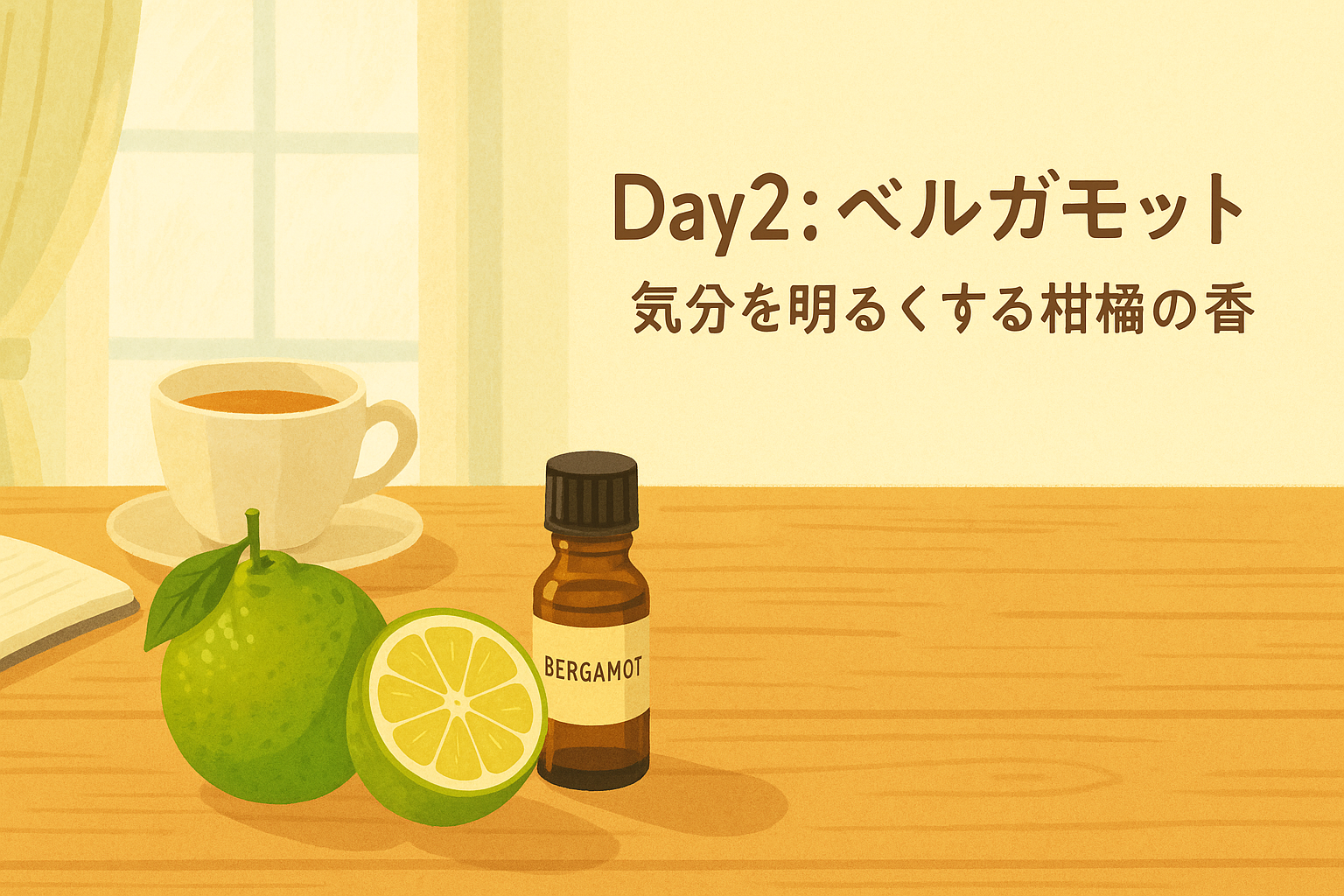 30日で楽しむアロマの香りDay2:ベルガモット ― 気分を明るくする柑橘の香 落ち込んだ気分をふっと軽くしてくれる、やさしい柑橘の香り。それが「ベルガモット」です。イタリア・カラブリア地方の太陽の下で育つ果実から抽出されるこの精油は、紅茶「アールグ 2025.10.2930日で楽しむアロマの香り