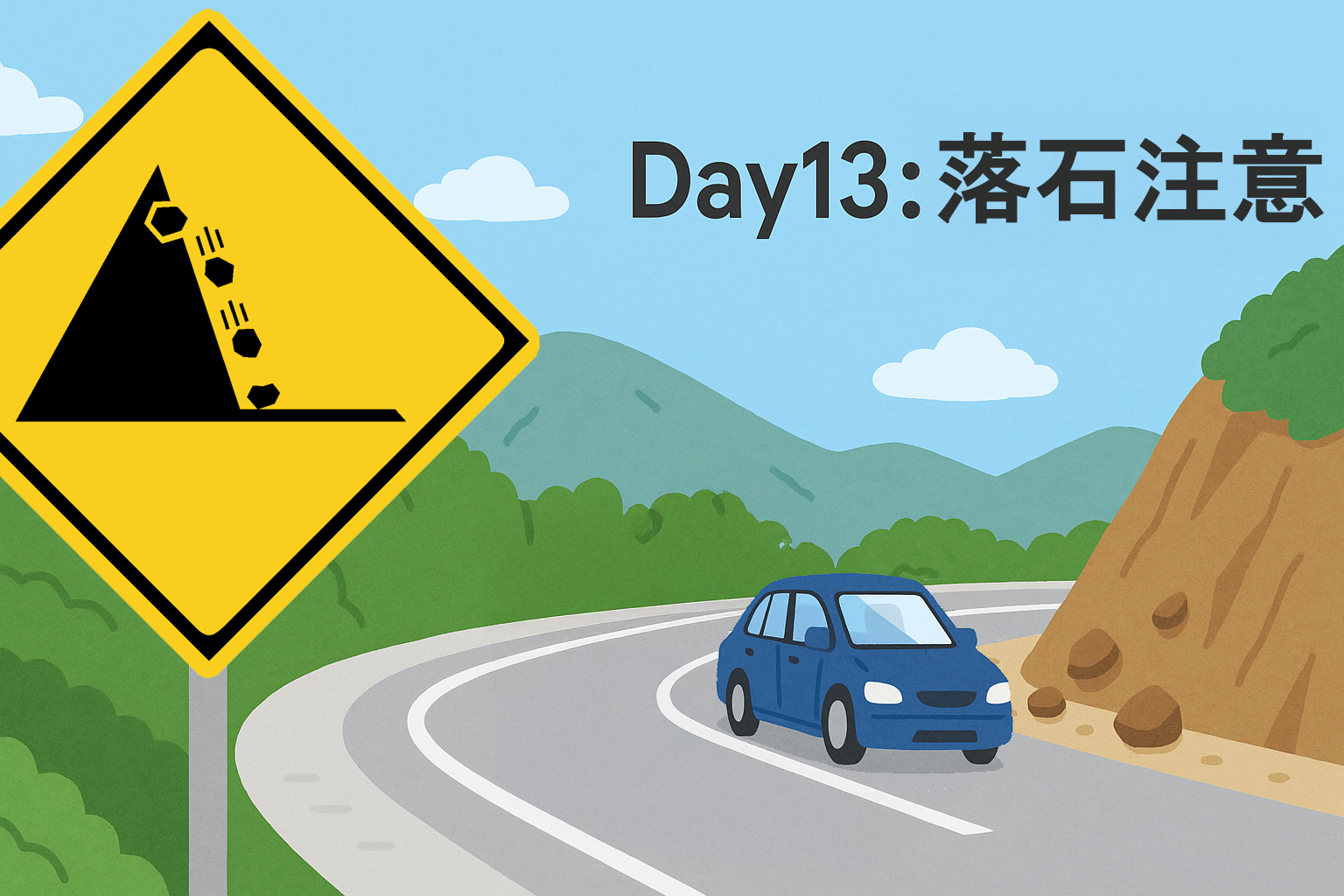 Day13では、この標識の意味、落石が起きやすい条件、安全に走行するためのポイントを詳しく解説します。