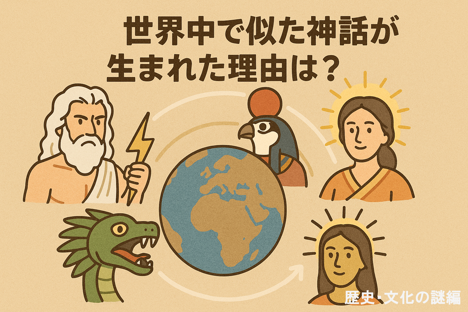 世界の神話の共通性は「人類共通の経験」「集合的無意識」「文化交流」などが要因と考えられるが、確定的な答えはない。