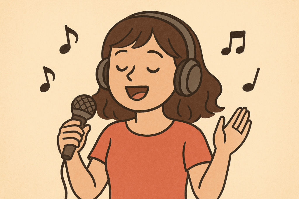 ジャンルは自由。童謡でもポップスでも、歌詞を口に出したときに気分が上がる曲を選びましょう。 - 大声でなくてもOK