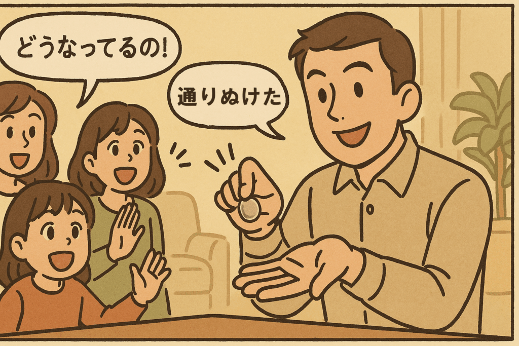 この「コインすり抜けトリック」は、静かな会話の中でサッと披露できる“知的マジック”。