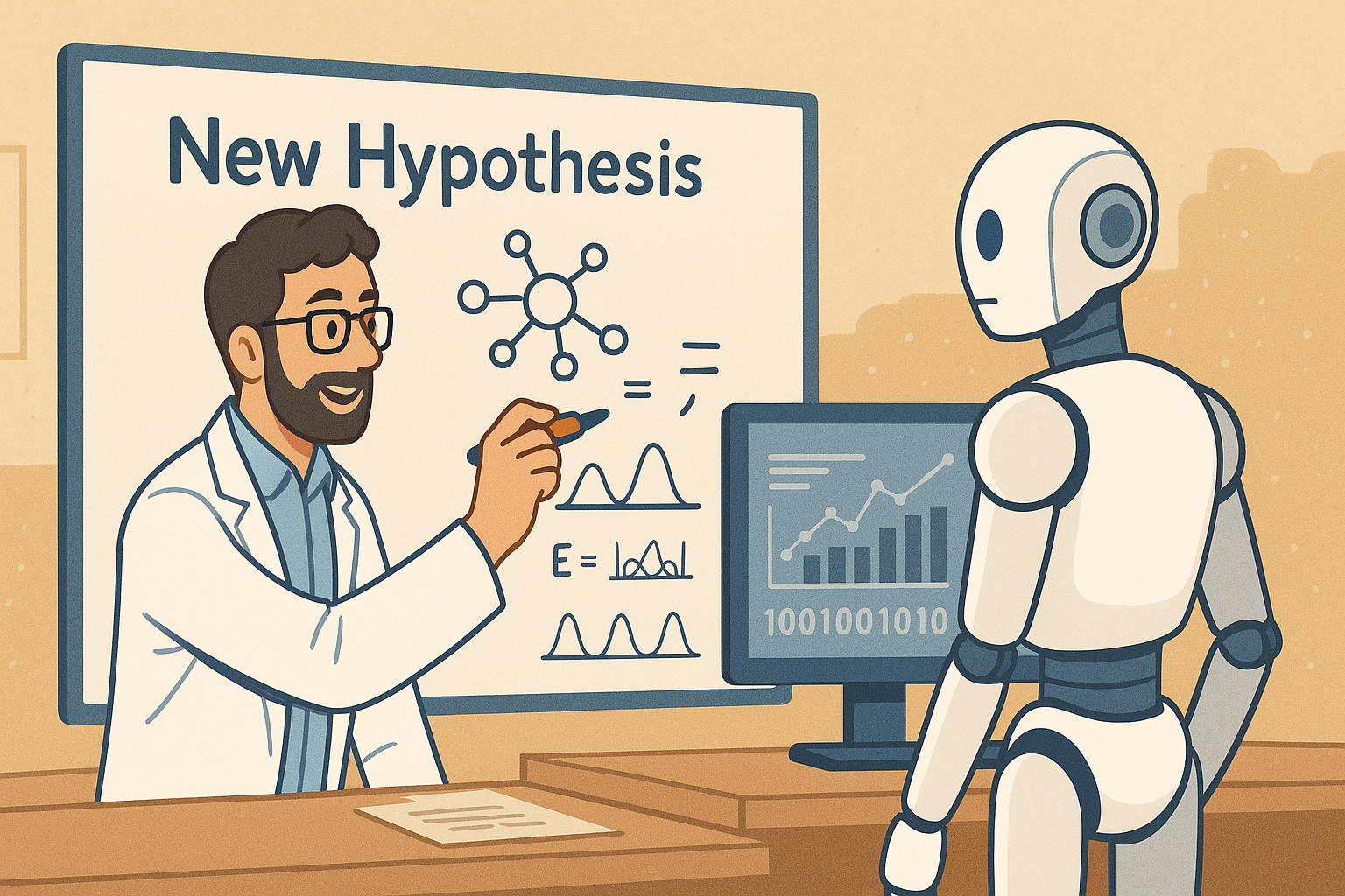 AIは過去の膨大な研究成果やデータをもとにパターンを見つけ出し、効率的に仮説を補助することが可能です。たとえば、新しい分子構造の予測や天文学的データの分析は、AIが人間を大きく上回ります。