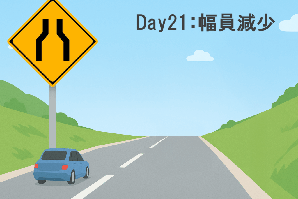 Day21:幅員減少 ― “道そのものが狭くなる”危険ポイント。対向車との接触を防ぐために
