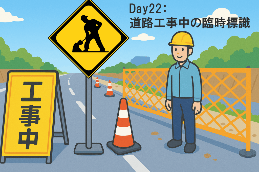Day22:道路工事中の臨時標識 ― “いつもの標識と違う”を見抜けないと危険!