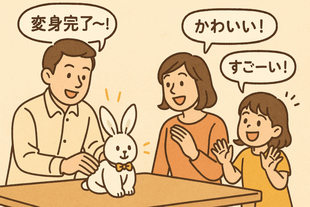 今日のかくし芸は、まったく動かずに観客を笑顔にできる“癒し系トリック”。