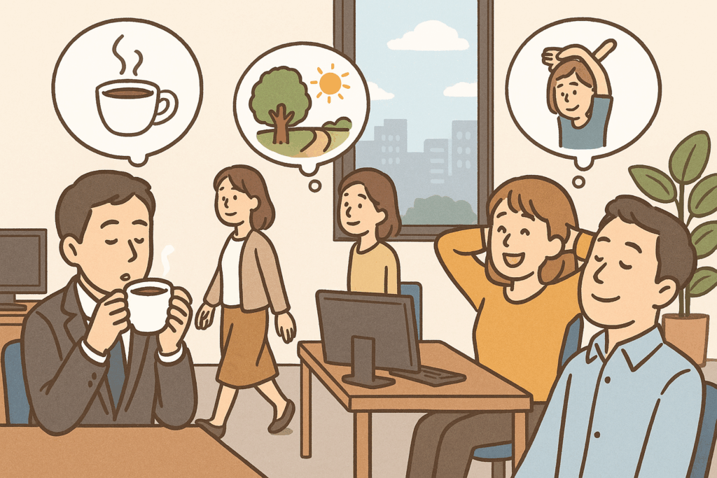 ストレスマネジメント研究では、短時間の気分転換が集中力や生産性を高めることが確認されています【出典:American Psychological Association】。また、リフレッシュ法は人によって多種多様で、聞いているだけで「自分もやってみたい!」と思えることが多いのも魅力です。