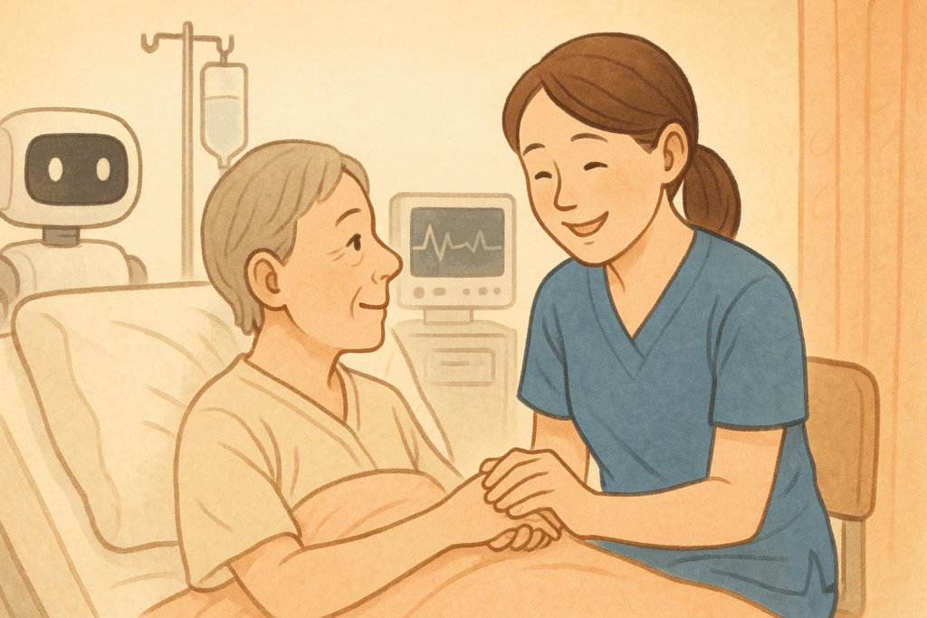 AIやロボットが単純作業や監視を担うことで、看護師や介護士はより「人間にしかできない部分」に集中できるようになります。つまり、テクノロジーは仕事を奪うのではなく、人間の役割をより本質的な「寄り添い」へと進化させるのです。