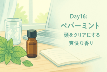 30日で楽しむアロマの香りDay16:ペパーミント ― 頭をクリアにする爽快な香り ひと息つきたいとき、頭の中をスッキリさせたいとき――そんな瞬間にぴったりの香りが「ペパーミント」です。清涼感あふれる香りが気分をリフレッシュさせ 2025.11.1230日で楽しむアロマの香り