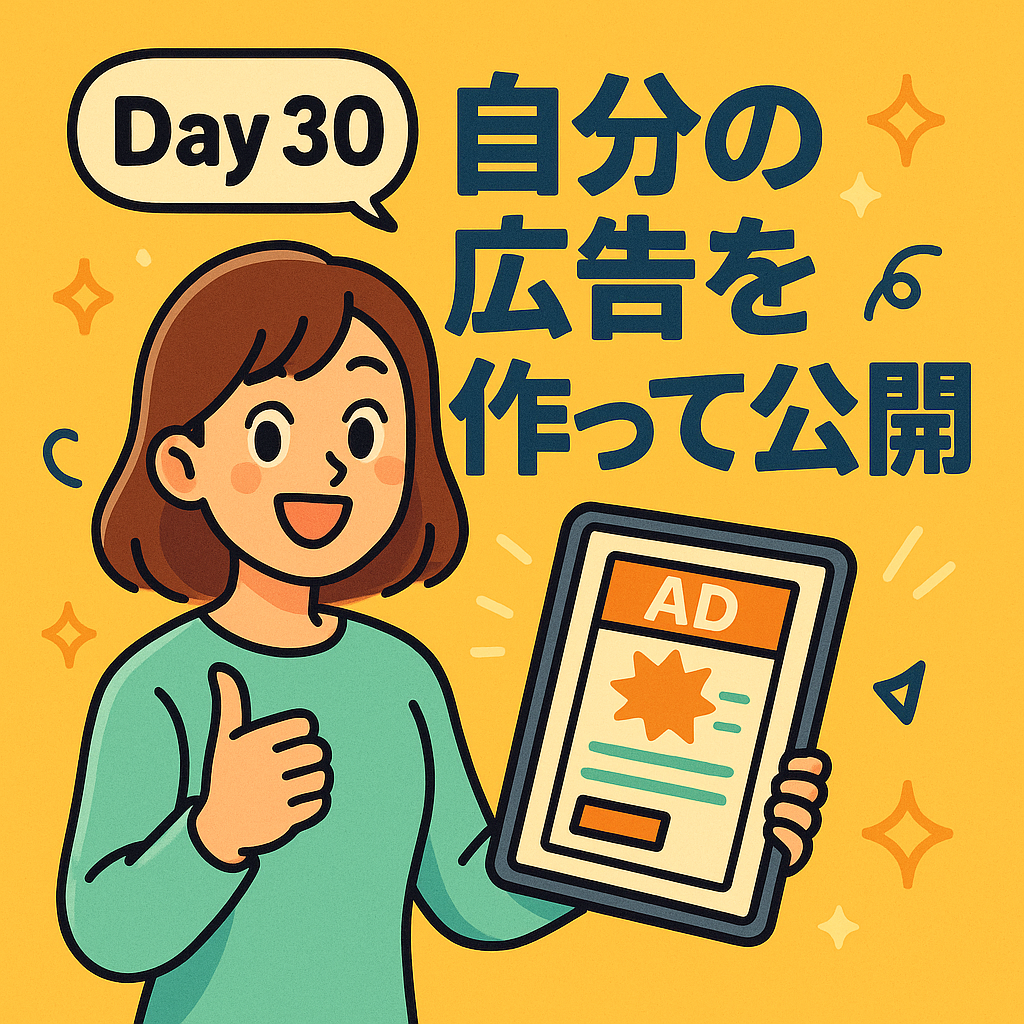 ユーザー心理から作る広告Day30:自分の広告を作って公開 広告シリーズ最終回。Day30では「自分の広告を作って公開」する実践ワークに挑戦します。ペルソナ設定、心理トリガー選び、キャッチコピー作成、デザイン設計、媒体選択、公開からフィードバックまで。学んだ知識を行動に移し、改善を重ねることで広告スキルは飛躍的に向上します。 2025.10.25ユーザー心理から作る広告